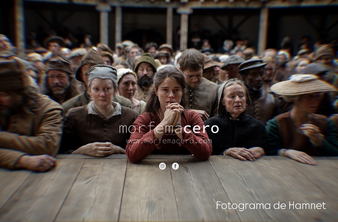La escenografía, la ambientación, la cámara que crea claroscuros que son cuadros, la actuación, todo parece espléndido aunque la necesidad hollywoodense del final feliz casi lo echa a perder todo. En la película el padre dramaturgo -su nombre sí se menciona- y Agnes intercambian sonrisas alegres, han entendido su cita con el Destino, han hecho bien las cosas, igual que Hamnet, que reaparece como un espectro. No había necesidad de agregarle crema chantilly a la tarta de chocolate amargo. Incluso la música, que al principio era magnífica, se vuelve al final melcochosa y digna de un aumento desmedido de la glucosa. Sin embargo, no la descalifico por completo. La disfruté y bueno, el espectador juzgará. Leer el libro y ver la película es un doble manjar. ¡Háganlo, queridos lectores de Morfemacero!